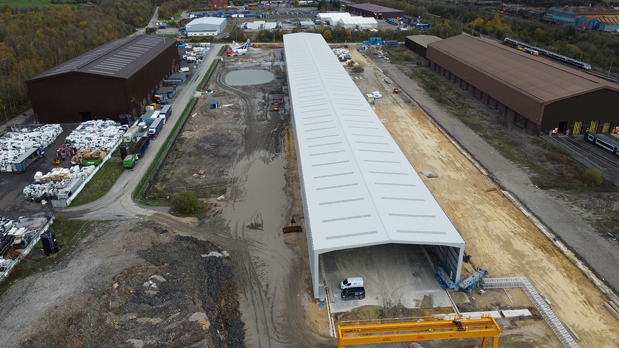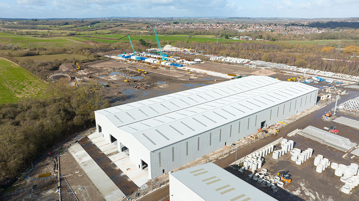 A precast concrete production building for manufacturing ‘Green Tunnel’ units for HS2.