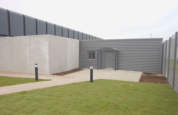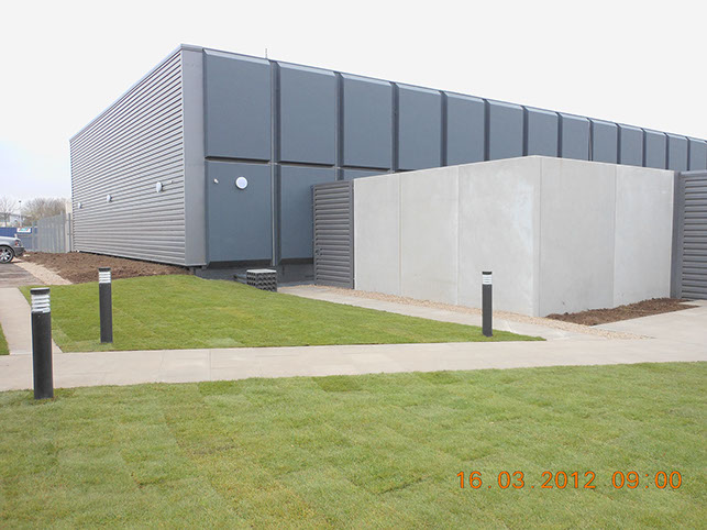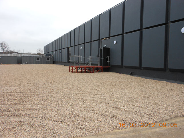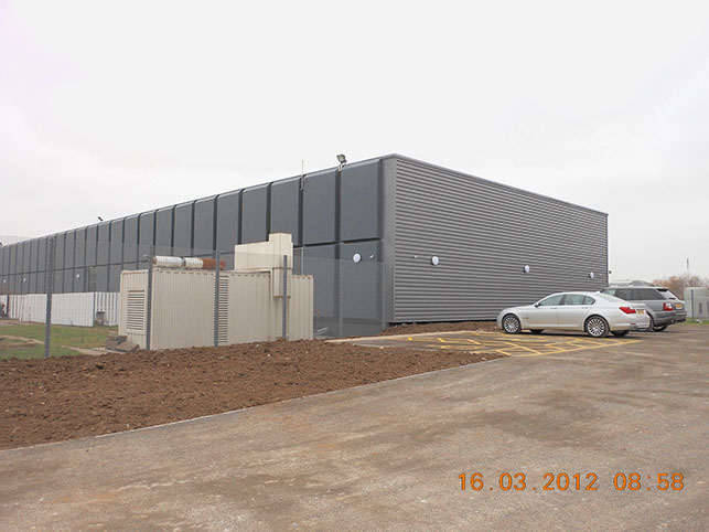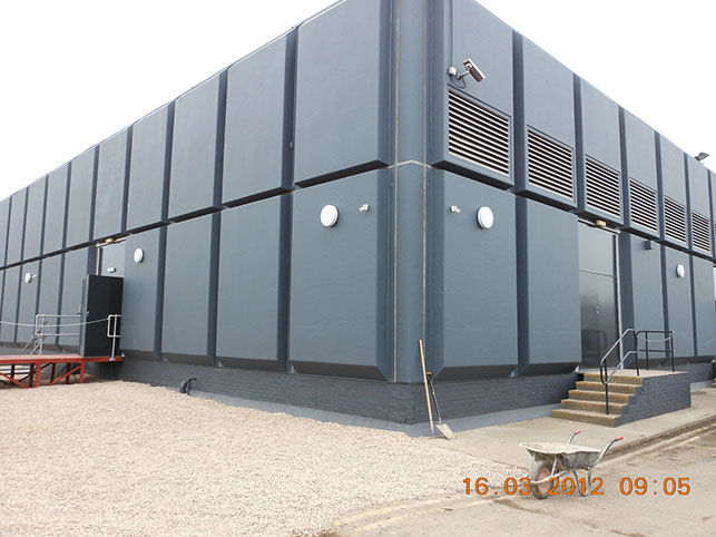 Construction of new data centre complete with high security precast concrete walling units and fencing surrounding the building.